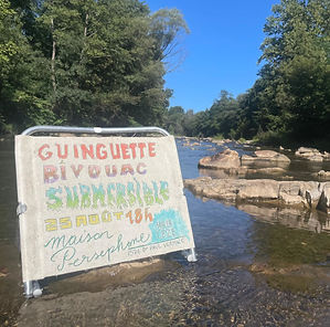 Un rendez-vous a été proposé pendant la résidence pour les habitant.es / adhérent.es de la maison Perséphone. Dimanche 25 août à partir de 18h une invitation à un apéritif Guiguette Bivouac Submersible sur la Cèze.